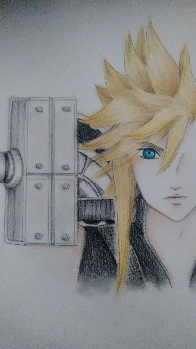 パステル+色鉛筆で。 #FF7acクラウド #パステル #色鉛筆