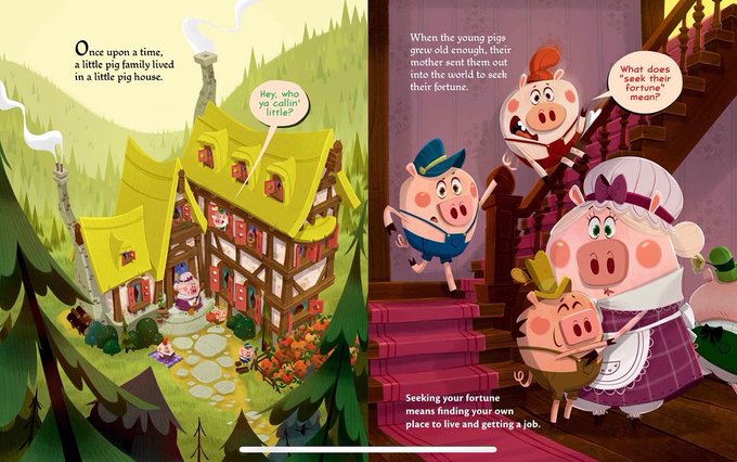 #RoughvsFinal: IT’S NOT THE THREE LITTLE PIGS, by @joshfunkbooks. This page is the #establishingshot. I wanted to contradict the narrator (he describes the house as small), also show more of the pig’s environment. #fracturedfairytale #illustration #childrensbookart #pigs