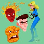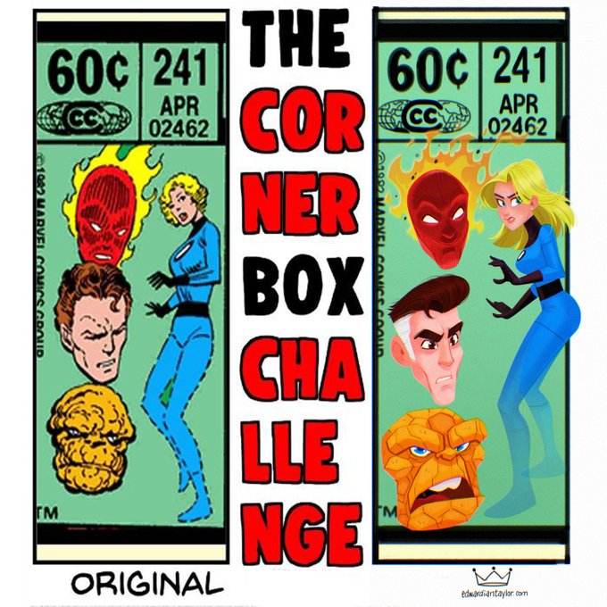 Decided to try out the #CornerboxChallenge with #Marvelcomics #FantasticFour. Here's my version vs. the original. #fanart #Marvel #MrFantastic #TheThing #TheInvisibleWoman #TheHumanTorch #comicbook #characterdesigns #illustration #art