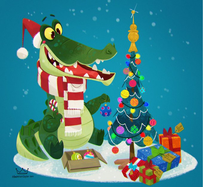 Happy Holidays! This weeks #AnimalAlphabets #AnimalsInSituations is C for #Crocodile #Celebrates #Christmas. Hope you all have a wonderful Christmas and Happy New Years! #illustration #art #design #characterdesign #christmastree #presents #snow #ornaments @AnimalAlphabets