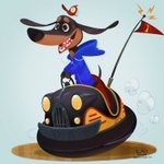 First art post of 2023! This weeks #AnimalAlphabets :#AnimalsinSituations is D for #Dachshund #driving a #Dodgem (#bumpercar). #illustration #characterdesign #dog #art #design