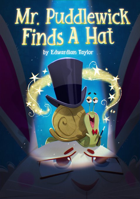 Back at it again! Finally found time to get back to wrapping these up. Here's my #TheImaginedBookCover2022 #MrPuddlewickFindsAHat I imagined a #snail accidentally finds a #magichat belonging to a former #magicshow #bunny. lol #art #illustration @BrightAgencyUS @_Bright_Agency