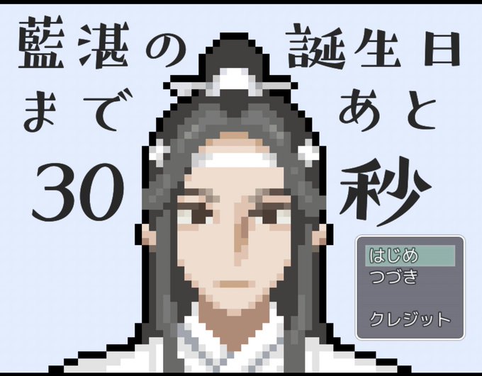 『藍湛の誕生日まであと30秒』 制限時間30秒で、魏無羨が大急ぎで藍忘機の誕生日プレゼントを探すだけのドットゲームです。エンドは5つ。PC推奨ですがスマホでもプレイできます。ノリだけのゲームなので気軽に遊んでください!少しでも楽しんでいただけたら嬉しいです~! eeasyllobene.html.xdomain.jp/lwj/game2.html