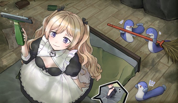 #nagiart 아가씨 페이퍼...가 아니고 하우스 플리퍼 하실때 창문 청소하신다고 냅다 침대위로 올라가신게 너무 귀여우셧서🥺💖