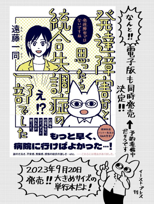 9月20日に発売される単行本『発達障害かと思ったら統合失調症の一部でした』の予約が今日からAmazonで始まりました。他のサイトでも順次受付予定とのことですのでどうぞよろしくお願いいたします。amzn.asia/d/4ZAGr0q (リンク先の表紙画像は仮のものです)