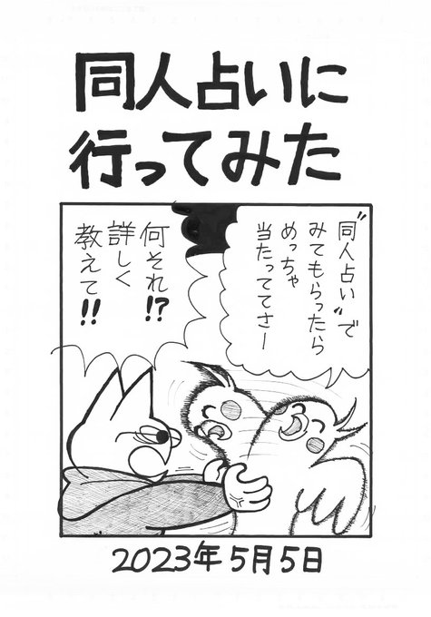 電子版『同人占いに行ってみた』販売開始しました! こちらはBOOTH版でeeend.booth.pm/items/4753392 こちらはnote版ですnote.com/eeend/n/n0825f… どちらも24ページ350円です。どうぞよろしくお願いいたします!