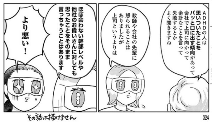 思ったことをそのまま言ってしまう人はADHDかもしれないのか…… 発達障害なわたしたち case.12 | 町田粥 comic.pixiv.net/works/8028 #pixivコミック