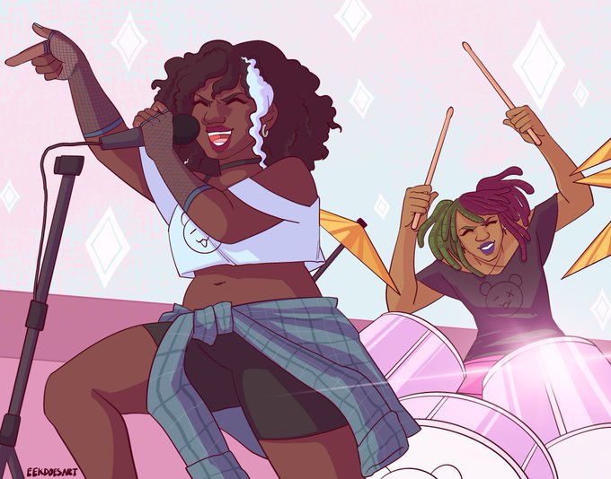 Happy #Juneteenth yall! I'm Liz and im an Afro-Latine illustrator and designer, currently developing a queer urban fantasy webcomic called 'Bread Pudding'! I also have a shop where I sell stickers! Ko-fi.com/eekdoesart Etsy.com/shop/eekscorner
