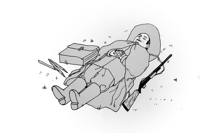 28. когда ты сидишь в засаде на вампиров и ждешь ночи, но ты далеко на севере и сейчас полярный день так что ты очень сильно заебавшийся охотник #inktober #inktoberDay28