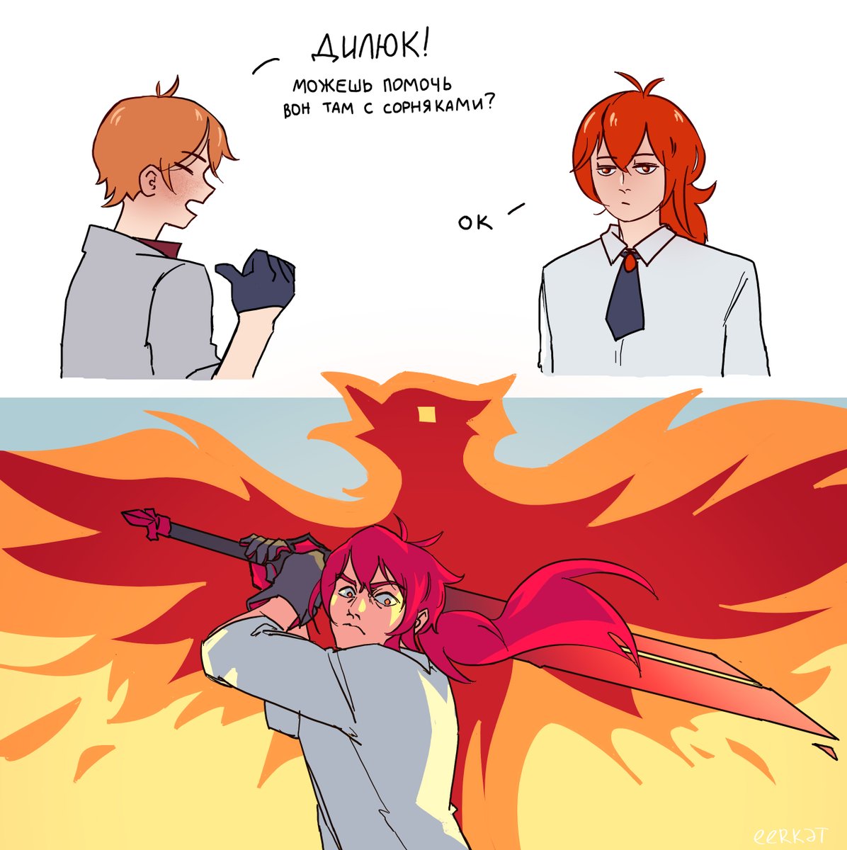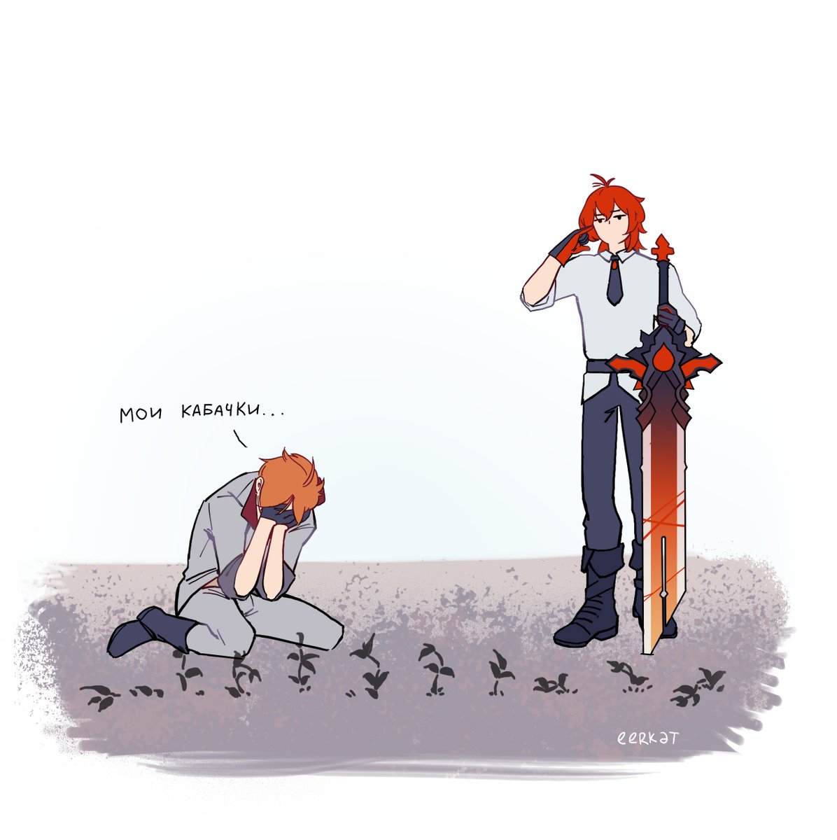 у нас с @izmoros есть ау где мы согнали всех геншиновских мужиков на дачу #GenshinImpact #tartaglia #Diluc