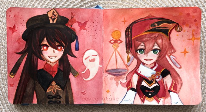 Hu Tao x Yanfei 🌸🍓 • watercolour #genshinimpactfanart #genshin #genshinimpact #原神 #hutao #yanfei #hutaoxyanfei #sketchbook