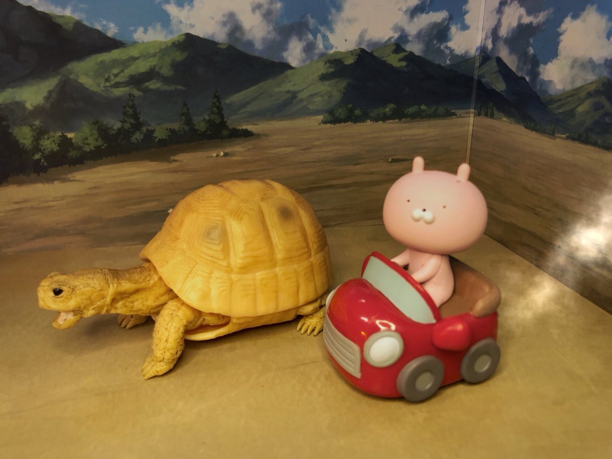 2/21 お題「追」 ウサギとカメ スポーツカーで追い上げて 昔話改変だ❗️ #おもちゃ撮影会