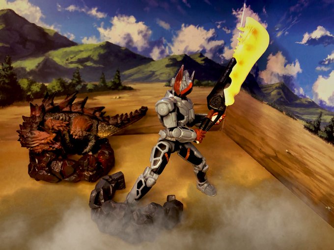 9 60 3/31 お題「野生」 野生のモンスター 一狩り行きますか❗️ 少し持たせるの大変ですが モンハン映画物販の大剣ペン 使ってみました😊 #おもちゃ撮影会 21/04/01 00:00