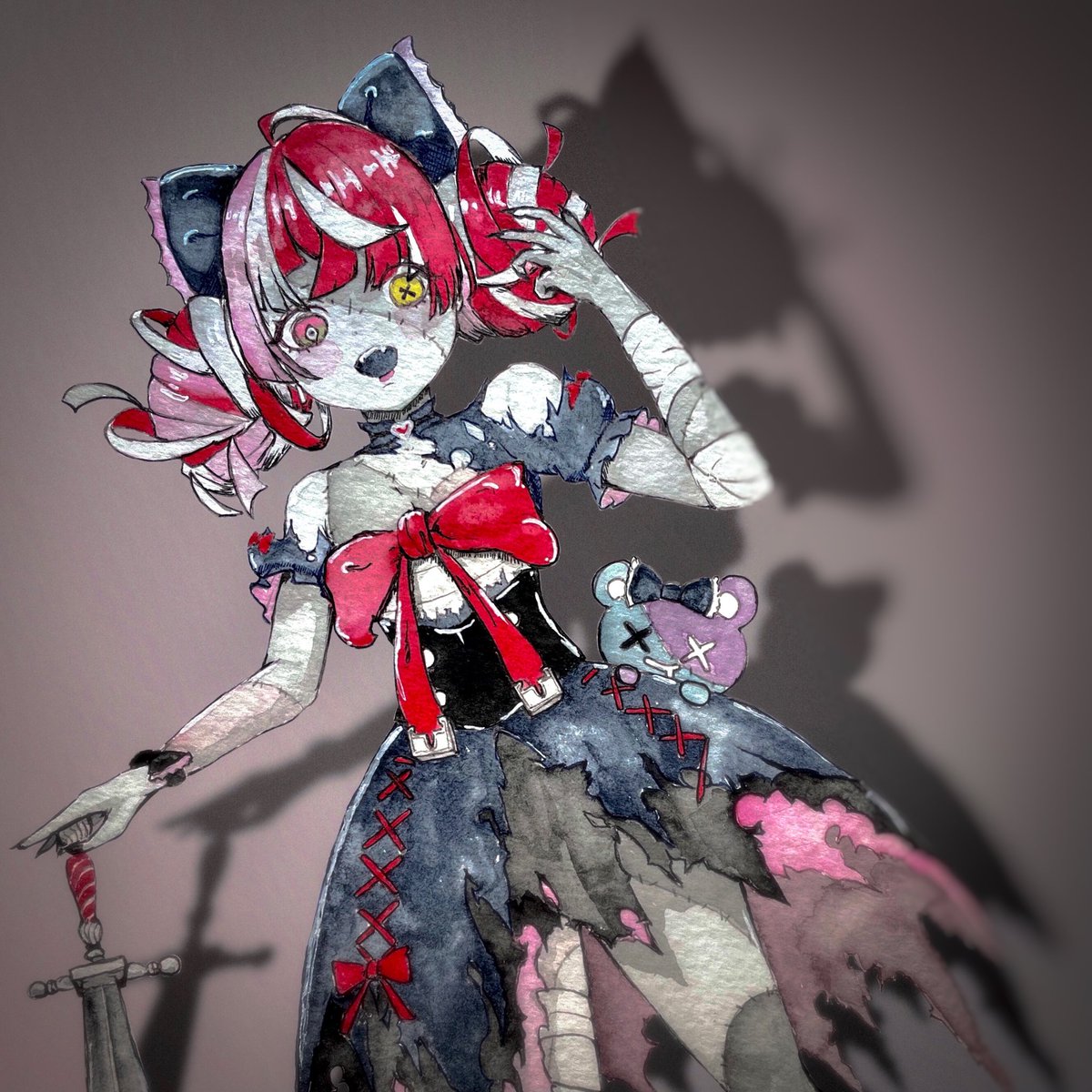 #絵クロマンサー アナログでるしあちゃんを描いてみた🦋背景はデジタルで