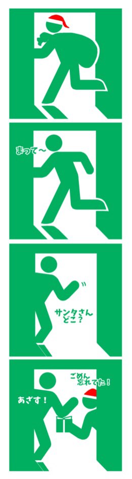 いっぱい描いたので、4コマにしてみた😆 タイトル:サンタさんは大忙し #4コマ漫画 #誘導灯 #イラスト #クリスマス