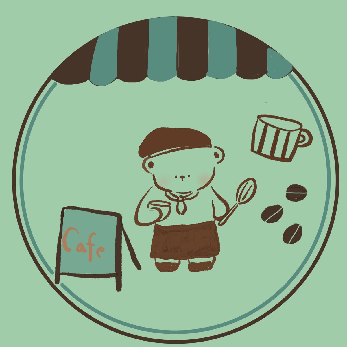 くまちゃんイラストカフェ風🐻 いらっしゃいませ〜。 #イラスト #カフェ #procreate #イラスト好きな人と繋がりたい #ゆるいイラスト