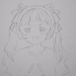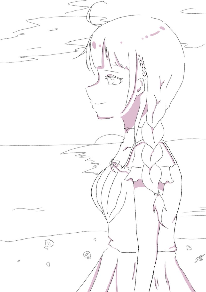 ポニテ水着シオンちゃん with( ゚∋゚) 時間あれば塗るかも... #シオンの書物