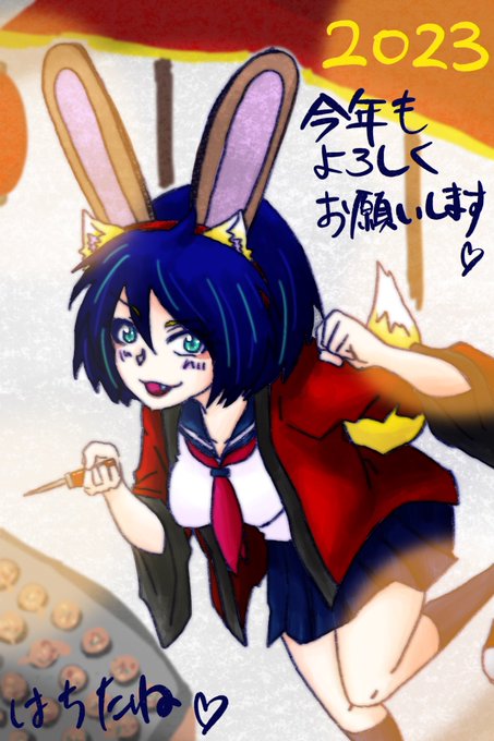 年末年始はコロナでちょっとダウンしてたので、書き初めが大変遅くなりました!卯年なのでケモ耳にダンボール製のウサ耳をつけてます!そそして羽生さんとお揃いでたこ焼きコスプレしてみました! 昨年はお世話になりました!今年も宜しくお願いします! #たこ焼き屋の店主姿