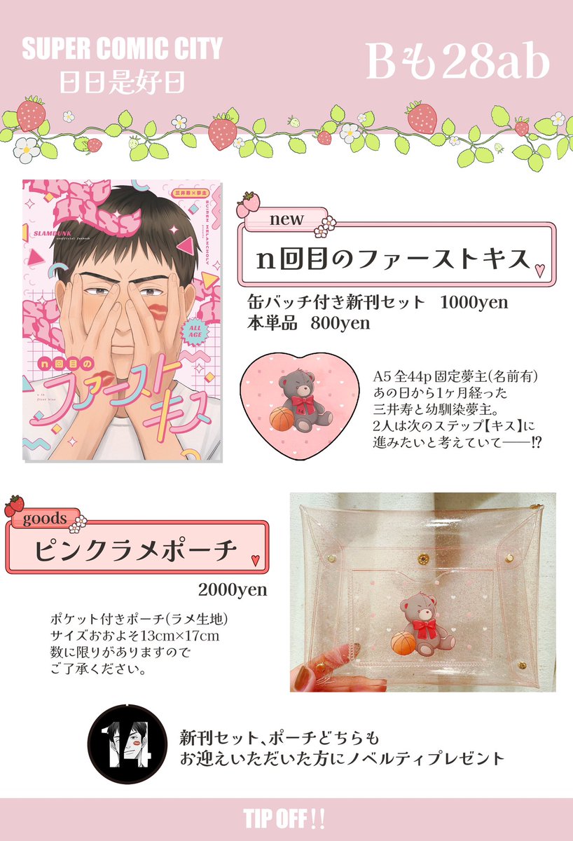 30 58 8/20 SUPERCOMICCITY TIPOFF!! 【合同サークル 日日是好日】 mti×固定夢主 夢漫画 及び グッズのお品書きです ⚠︎新刊セット、ポーチには数に限りがあります ⚠︎開始時の高額紙幣でのお取引はお断りしております サンプルはリプ欄に繋げます🙇♀️ 23/08/12 01:02