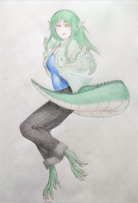 3 11 little-Aさんの鰐の亜人ちゃんを 描かせていただきました❗️ 足を恐竜っぽくして しまったからか鰐感が…💧 21/10/20 07:54