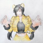 アリアさんが年賀状で トラ衣装のクニイチさんを 描いてくださったので ワチキも描いてみた~! クニイチ「そういやツミハは去年 牛の服着てなかったよな?」 ツミハ「………(゚ω゚;)」