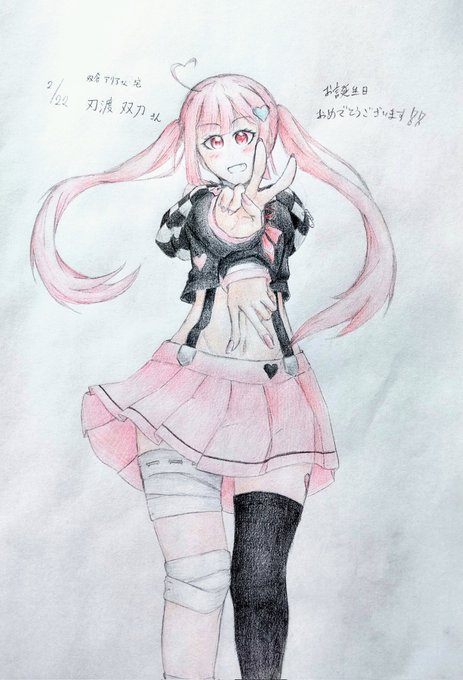 2/22 刃渡双刀さん お誕生日 おめでとうございます‼️🎉🎉 今までより可愛く描けたと 思います!! ポーズがかなり難かった…😅 #刃渡双刀誕生祭2022