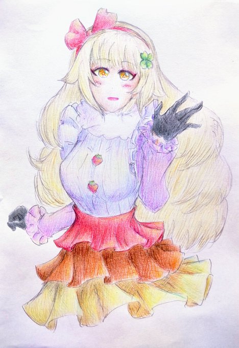2 3 @Kundko1 ケーキの子も描いてみました! 頭のリボンとイチゴのボタンが カワイイです❗️(*´ω`*)💕 22/07/07 14:21