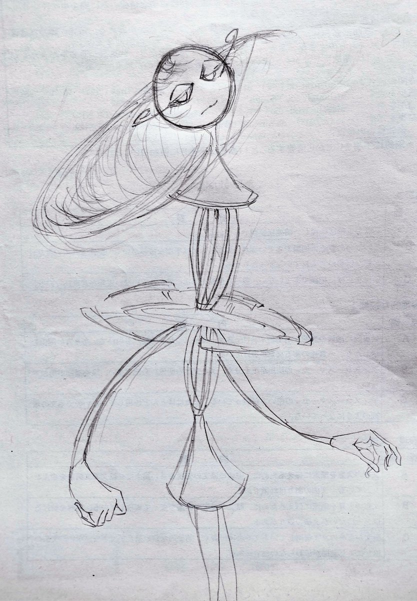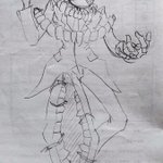 楽書き1 肋アコーディオンの異形 目にはカスガイ(?) リボン柄のメイク? 歯が二股になってる 銘枕(ナマクラ)さん←雑命名 耳たぶ冷たそうw 魚(いお) 骨みたいな、ザ・落書き 続く!↓