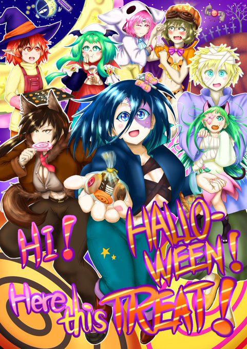 ハロウィンイラスト完成~‼️ ツミハさん達が お菓子を配ります❗️ #鍔鳴