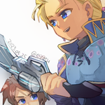 【FF6/エドガー・FF8/スコール】 変わった武器だね、分解してみて良いかい??? DFFは10代のキャラも多いのでエドガーの年齢と地位なりの落ち着きが際立ってて良い~~スコールみたいな子とも難なく付き合えるんだろな。 #eggru_ワンドロ