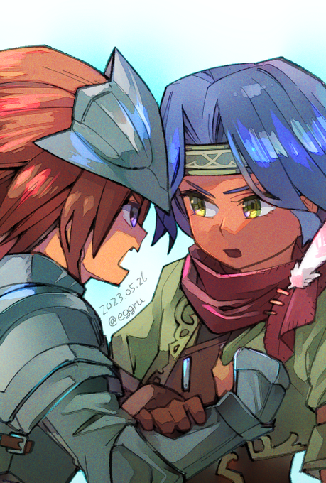 【デュラホ】 主人公の中で本気の喧嘩とか同性同年齢のこの2人の間でしか発生しないと思うので旅の間のどこかでつかみ合いの喧嘩しててほし~い💕 で、喧嘩してフン!ってなった直後が一番戦闘での息が合ってる。 #eggru_ワンドロ