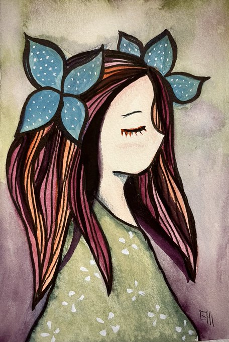 1 55 夜な夜な絵墨でドローイング 絵墨だと 女の子描きたくなります。 ハガキサイズ #絵墨 #イラスト 22/09/14 11:54