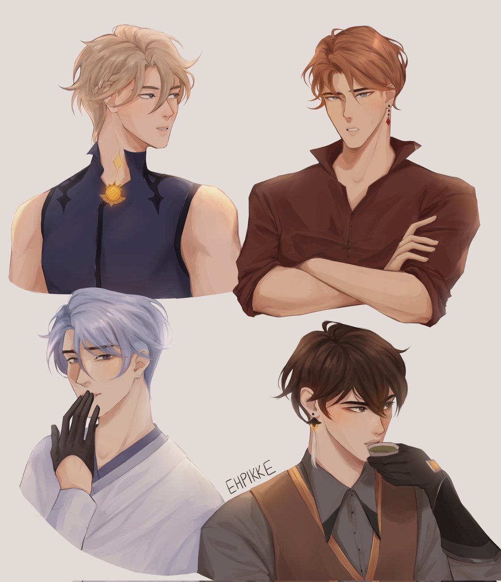 genshin men with short hair.... 😳 #GenshinImpact #genshinimpactfanart #genshintwt #childe #zhongli #albedo #ayato #KamisatoAyato #fanart