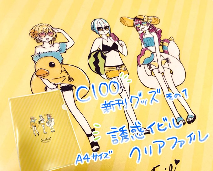 13 42 ギリギリになったけどC100新刊セットのグッズ見て~~~~!😂✨ 夏仕様の誘惑イビル柄のクリアファイル、LiPPSのレトロ風缶バッチ~!!! 実物もっと可愛いのでぜひ実物見に来てね…!!! #C100 22/08/12 20:33