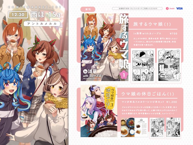 明日のお品書きです〜✨ 新刊にカノープスが浅草旅行する本持っていきます。 西1 ほ-15aでお待ちしております…! #C101 #ウマ娘