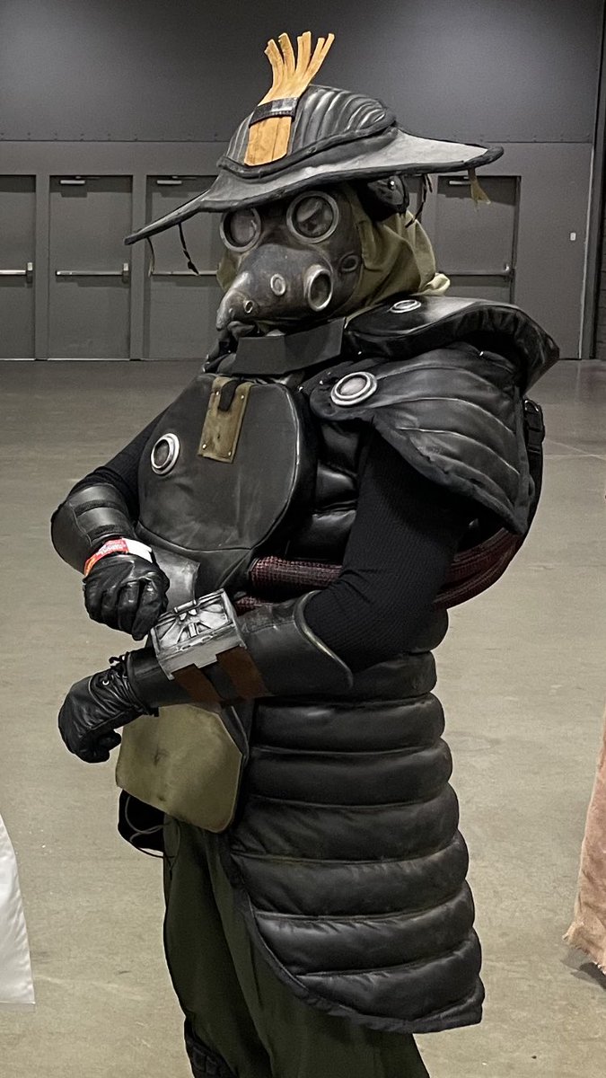Was going to wait until I added LEDs but I want to show him off now! Added some extra weathering to make him a little different. Though I might add more still 🧐 We’ll see #warframecosplay #grineermanic #cosplay #grineer #cosplayer