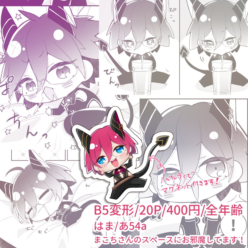 【5/3ブリデ新刊】小さいサキュバスの茨+凪茨の本❣️ 変な本です! 長めサンプル→pixiv.net/artworks/10753… 当日はまこちさんのスペース【はま/あ54a】にお邪魔してます!よろしくお願いします~!
