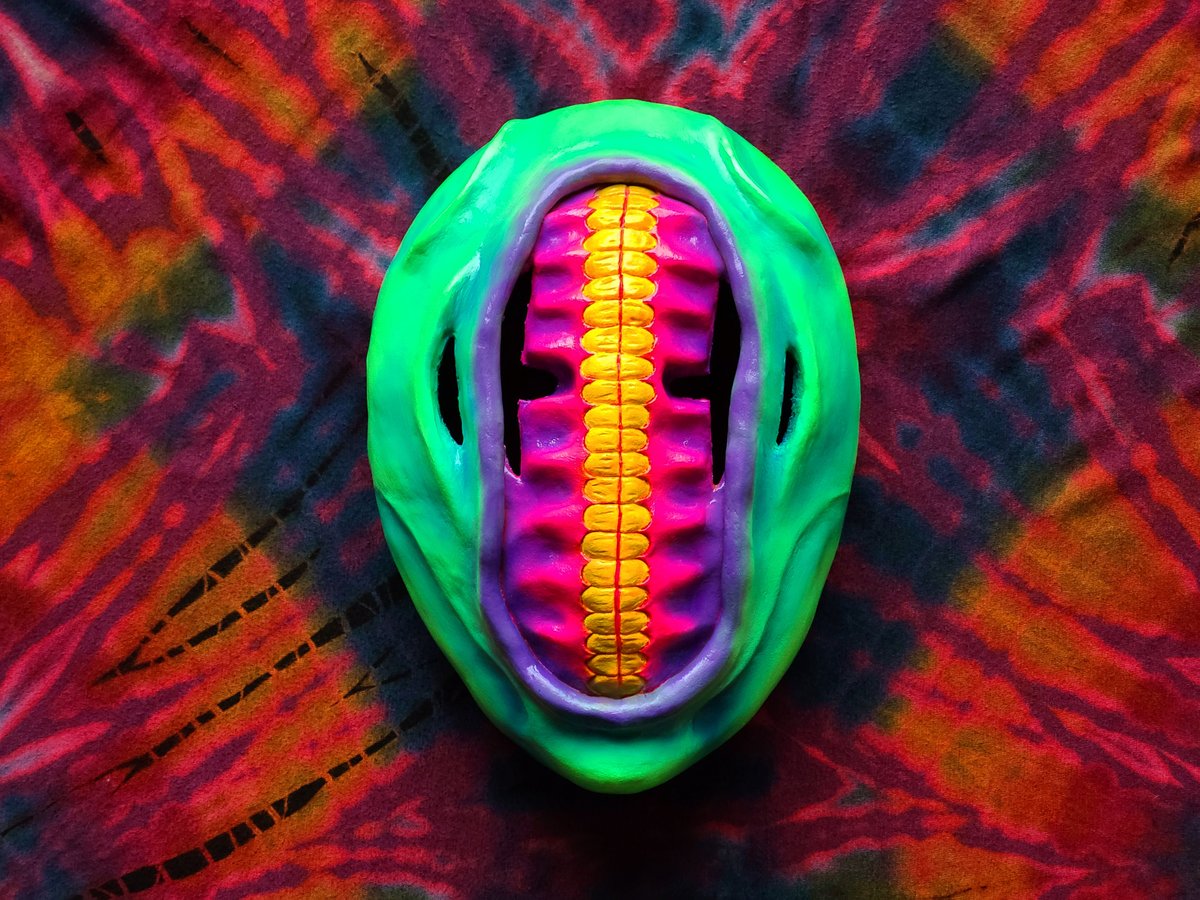 コム(@komu8931)さんにご依頼いただいた仮面が完成いたしました! #顔屋の八八 話し合いを重ねた結果、とても奇抜なデザインに笑