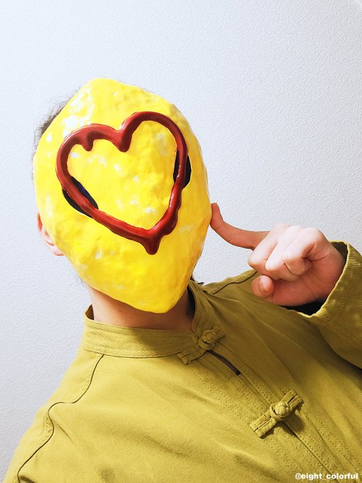 26 92 コム(@komu8931)さんにご依頼いただいた仮面が完成いたしました! #顔屋の八八 話し合いを重ねた結果、とても奇抜なデザインに笑 22/01/09 19:01
