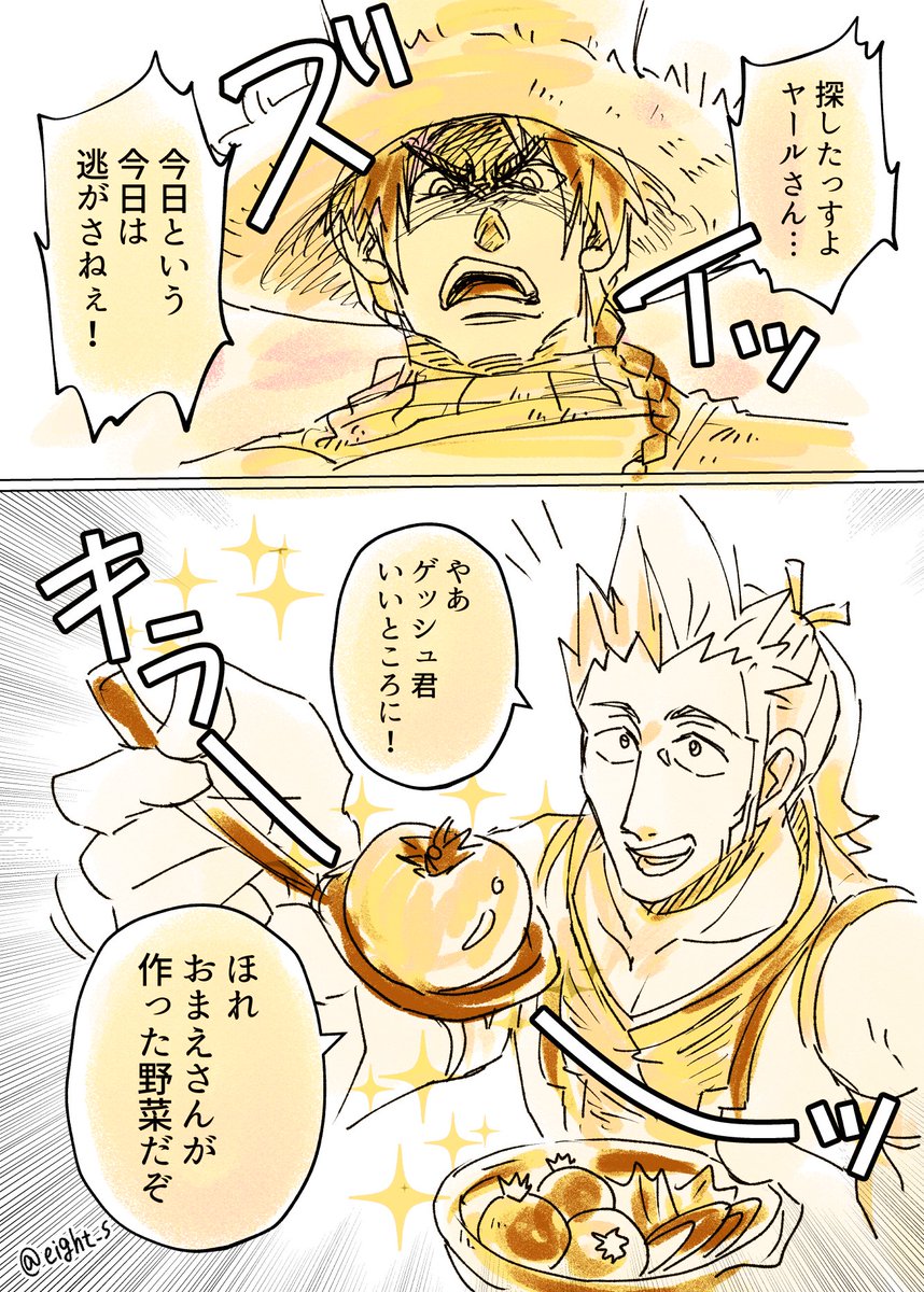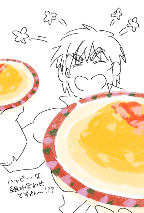 #幻水ごはんウィーク 皆さんの再現レシピすごいですね!楽しく拝見しております! 終了間際ですが過去絵にちょっと加筆して✏️ (他にも食べ物にまつわる過去絵が少々見つかったのでツリーに載せていきます~