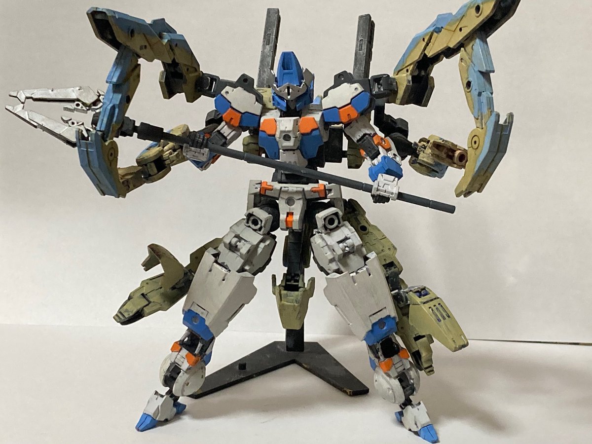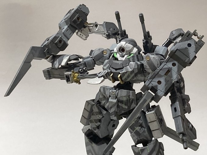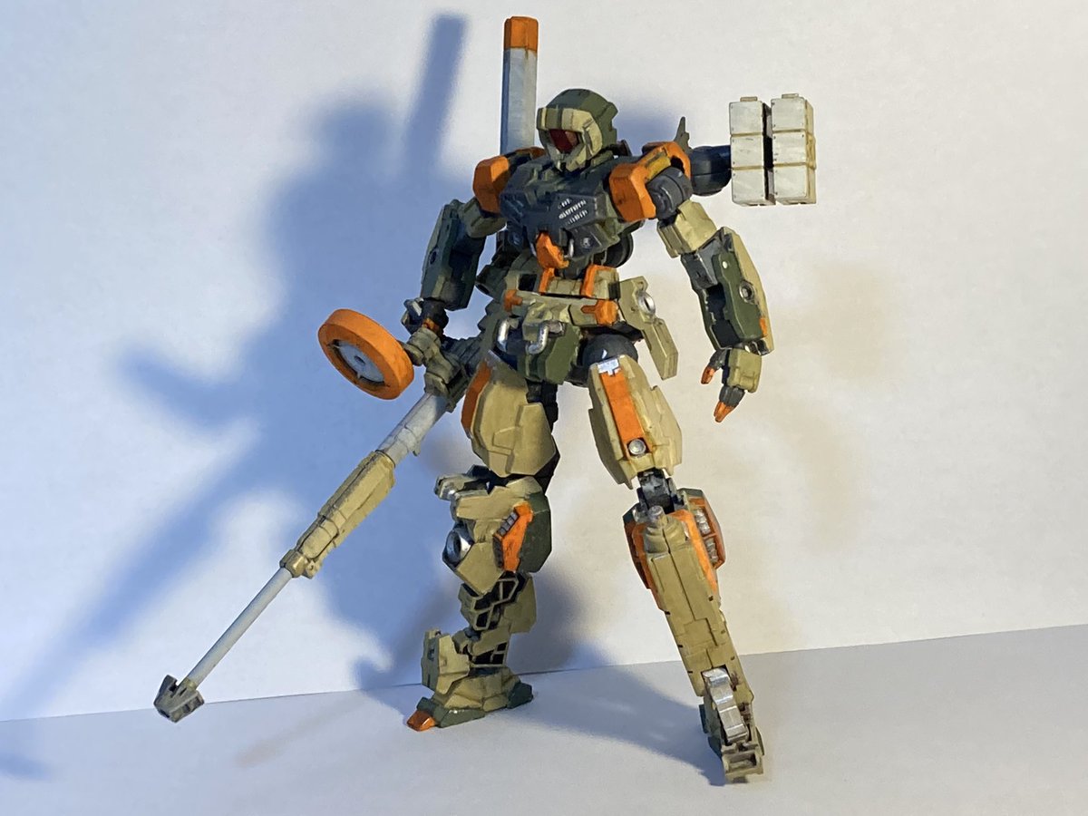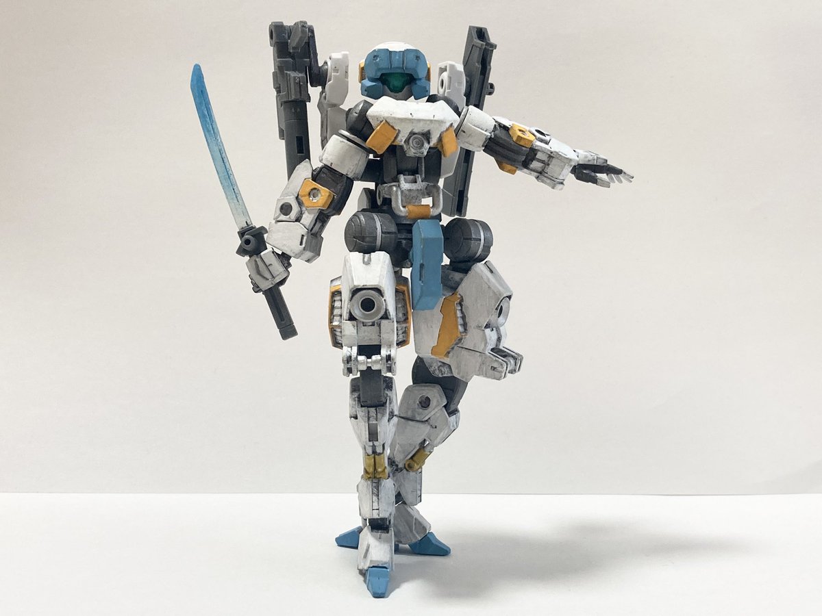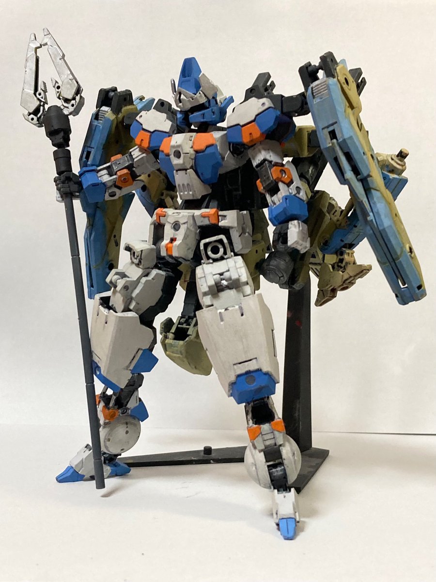 「スロウハンド」 ポルタ・ノヴァ III型の改修機 調査に特化した僚機の護衛が任務であるため、一対多や僚機の盾になる状況を想定したカスタマイズがなされている。 バックパックにはシールドとクローを兼ねたサブアームを搭載、右腕はガトリングと斧を搭載した義手となっている。 #30MMTAG1204 #30MM