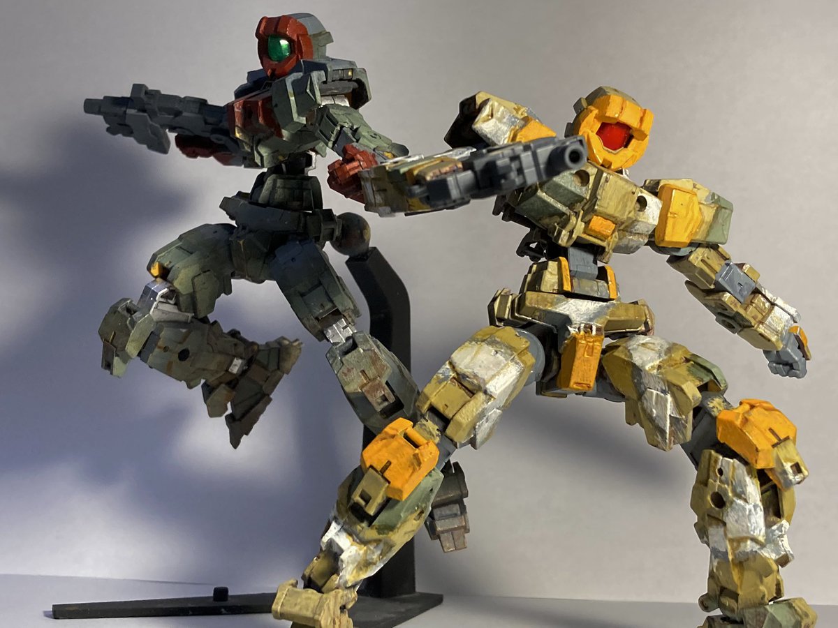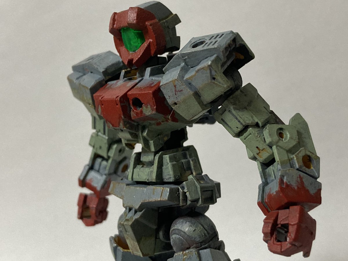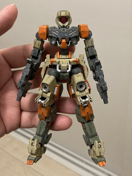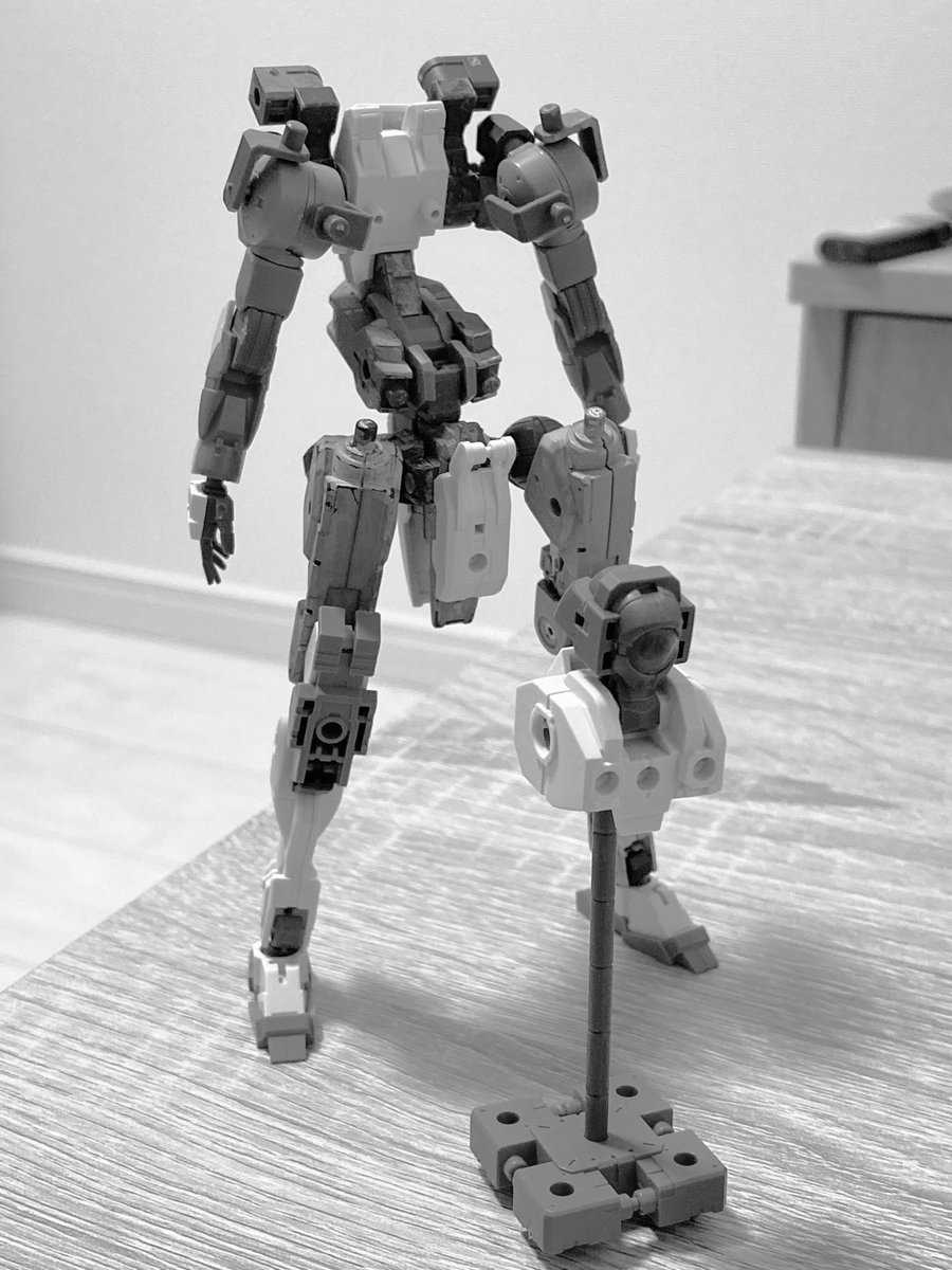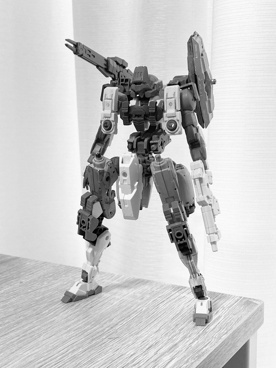 「スロウハンド」 ポルタ・ノヴァ III型の改修機 調査に特化した僚機の護衛が任務であるため、一対多や僚機の盾になる状況を想定したカスタマイズがなされている。 バックパックにはシールドとクローを兼ねたサブアームを搭載、右腕はガトリングと斧を搭載した義手となっている。 #30MMTAG1204 #30MM