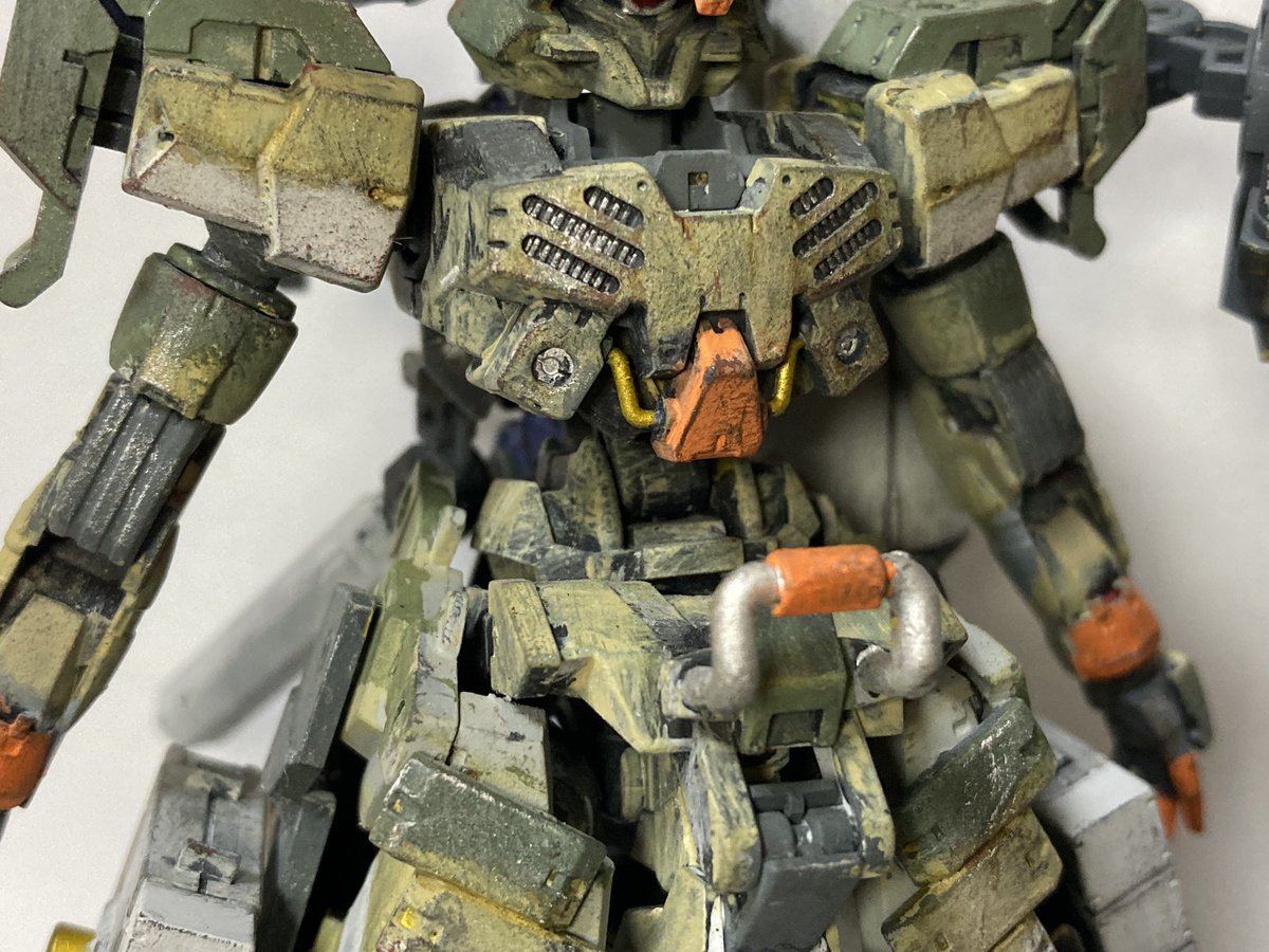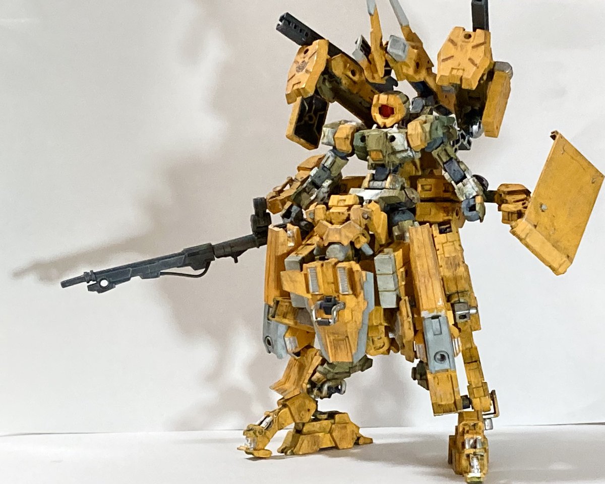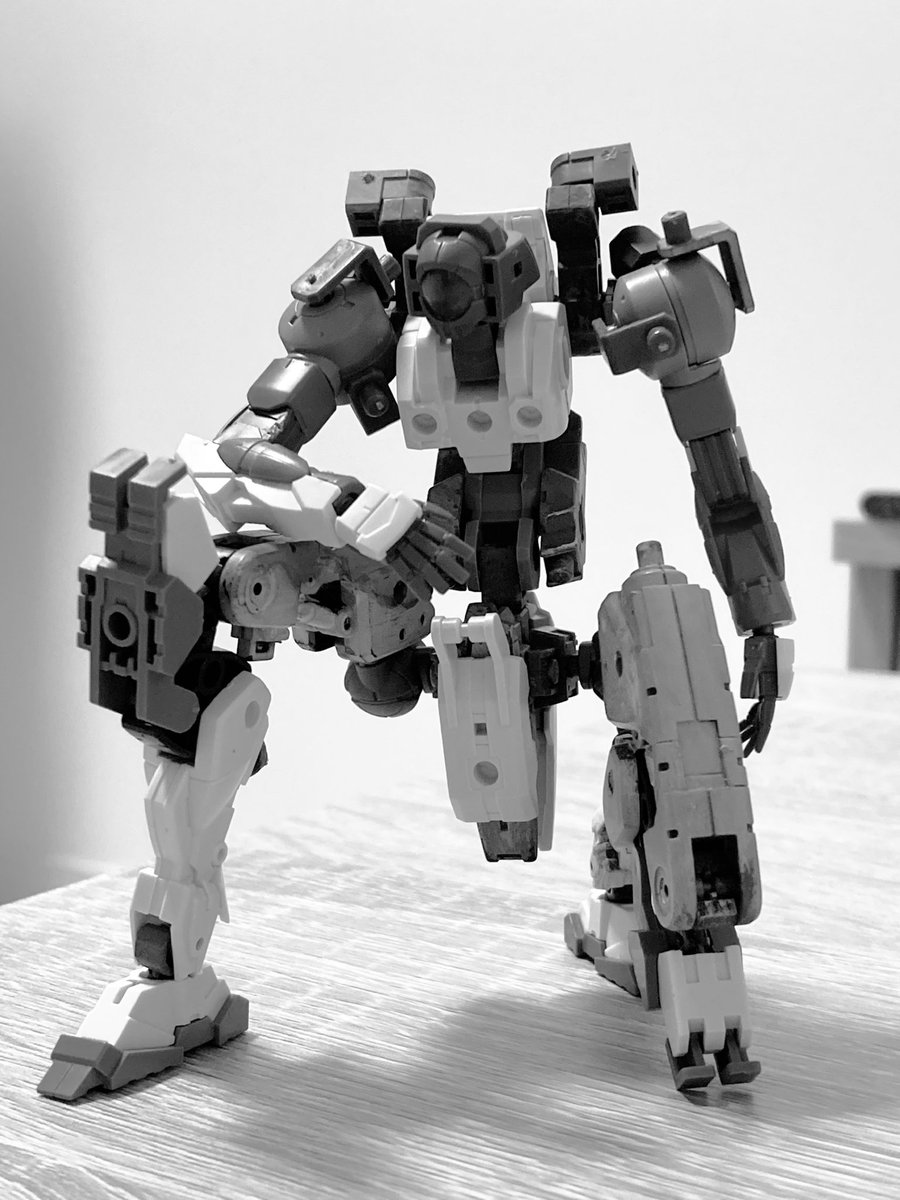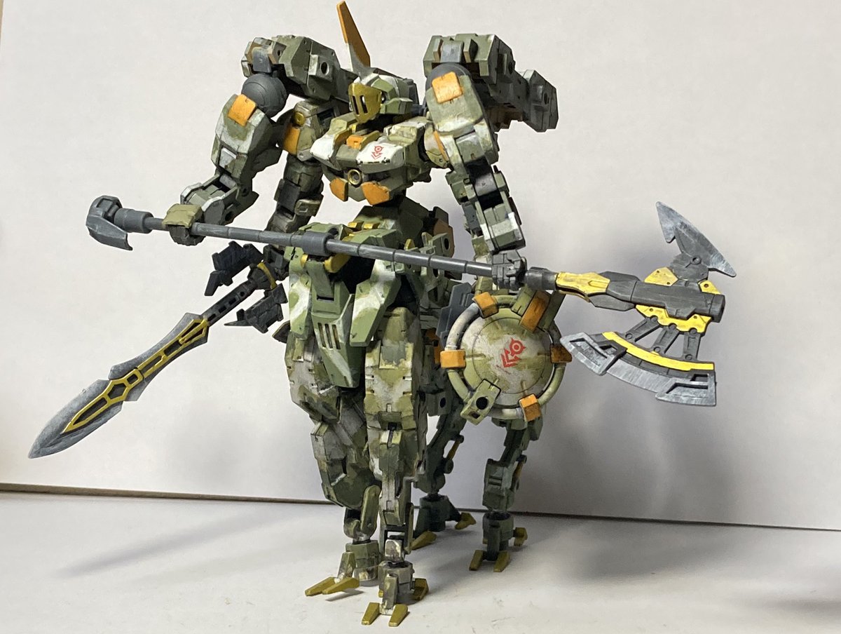 「スロウハンド」 ポルタ・ノヴァ III型の改修機 調査に特化した僚機の護衛が任務であるため、一対多や僚機の盾になる状況を想定したカスタマイズがなされている。 バックパックにはシールドとクローを兼ねたサブアームを搭載、右腕はガトリングと斧を搭載した義手となっている。 #30MMTAG1204 #30MM