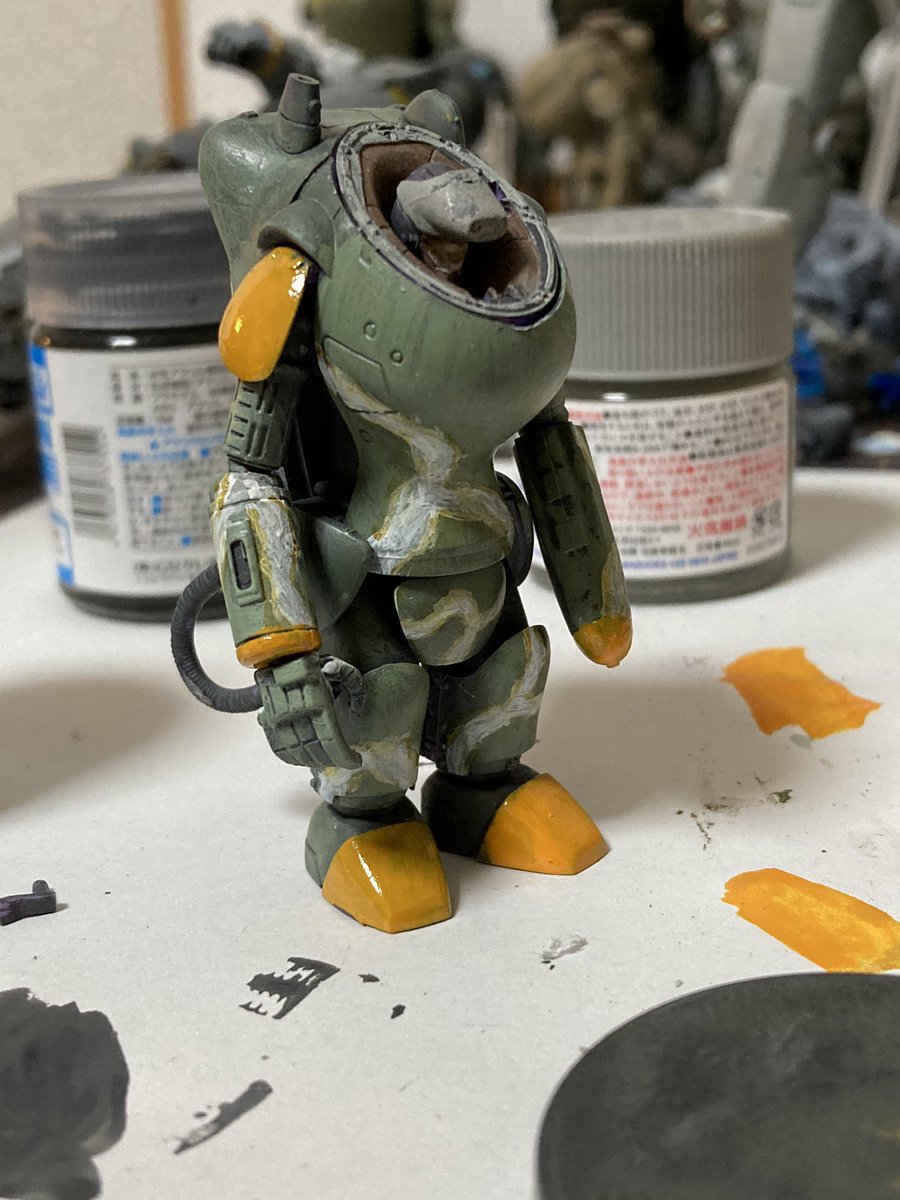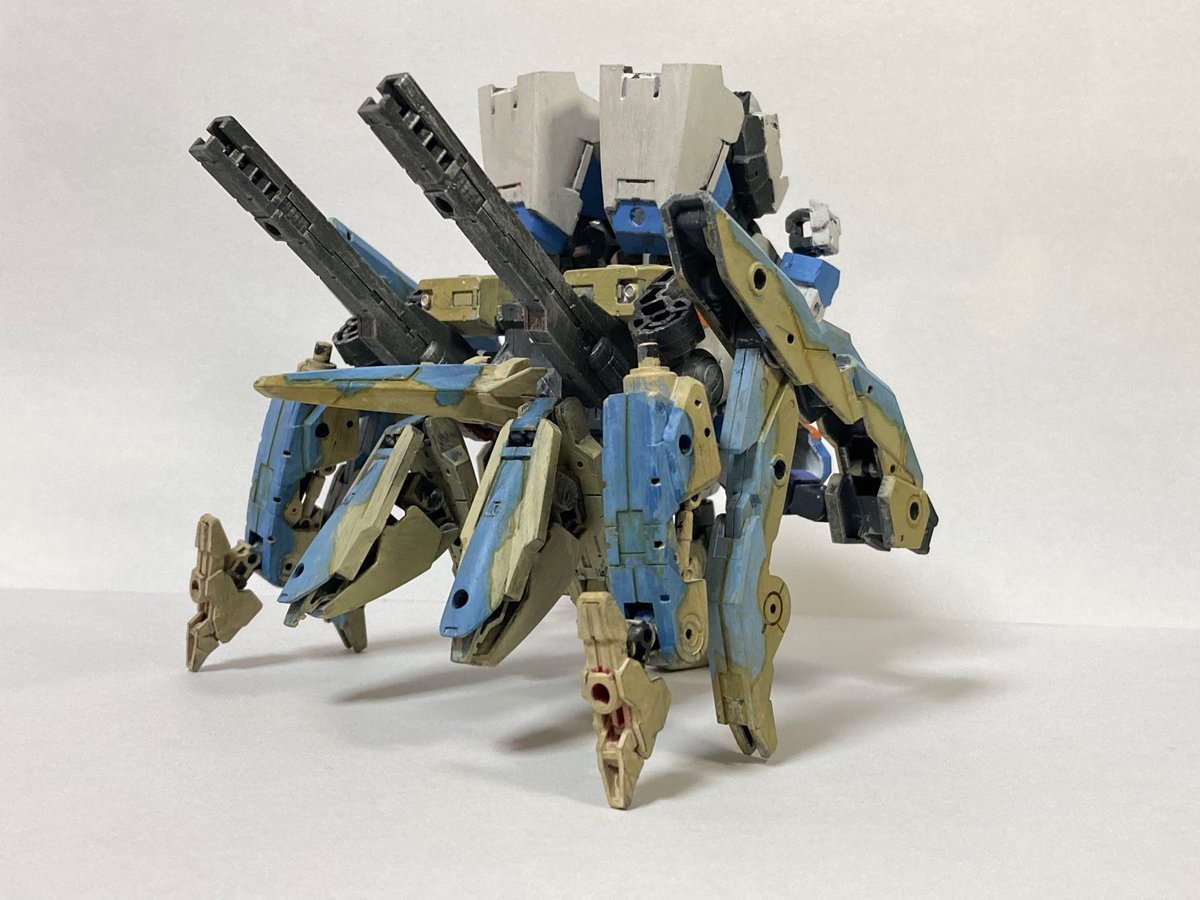 トランジット・ミストラル エスポジットの試験機にあたる可変エグザマクスバリエーションの一機 甲殻類を模した移動砲台に変形できる 本来の役目は終えたが、シェイプシフター小隊の戦闘データを基にした無人機に改装されて連合軍の火山惑星侵攻に加わる #30MM火山惑星戦 #30MM地球連合軍