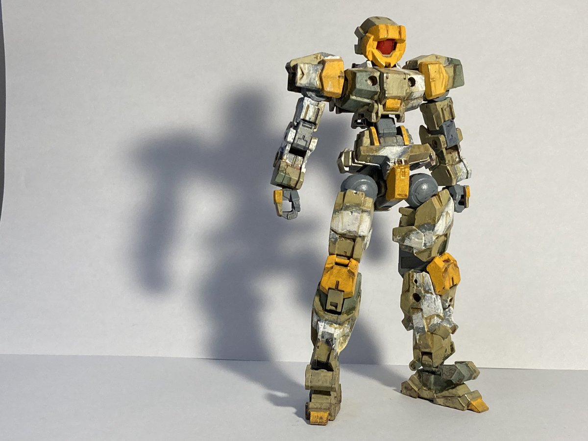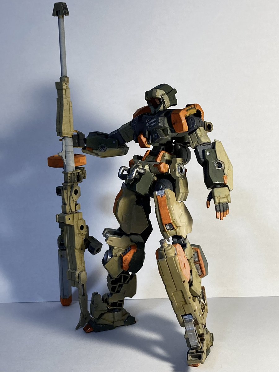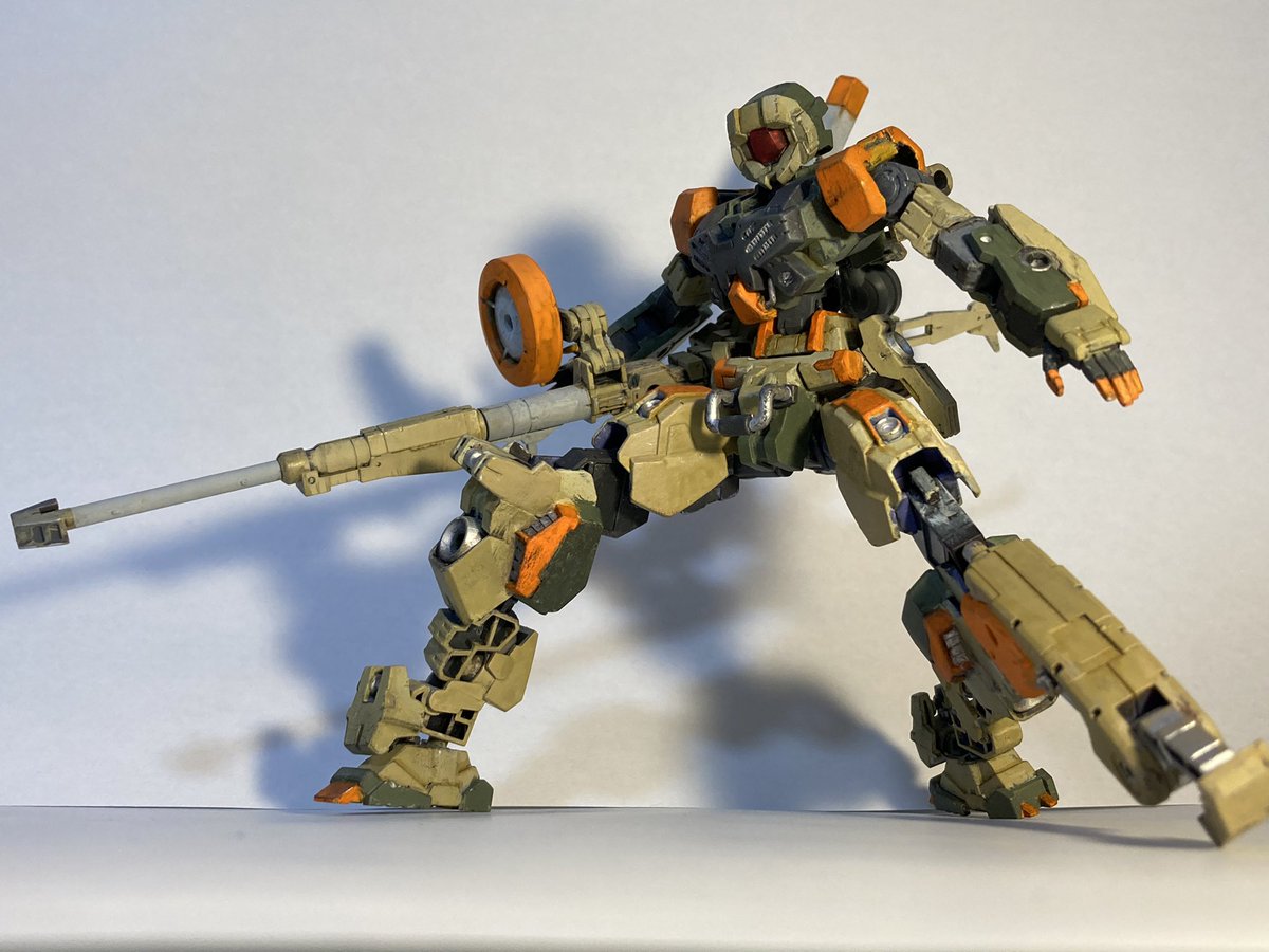 エイトビーター[荒野戦仕様] ロングライフルを装備した狙撃に特化した機体 脚部のアタッチメントを展開して体勢を安定させることが可能 本体はアルトの改造機だがもはや頭部以外に原型を残していない #30MM荒野戦 #30MM地球連合軍