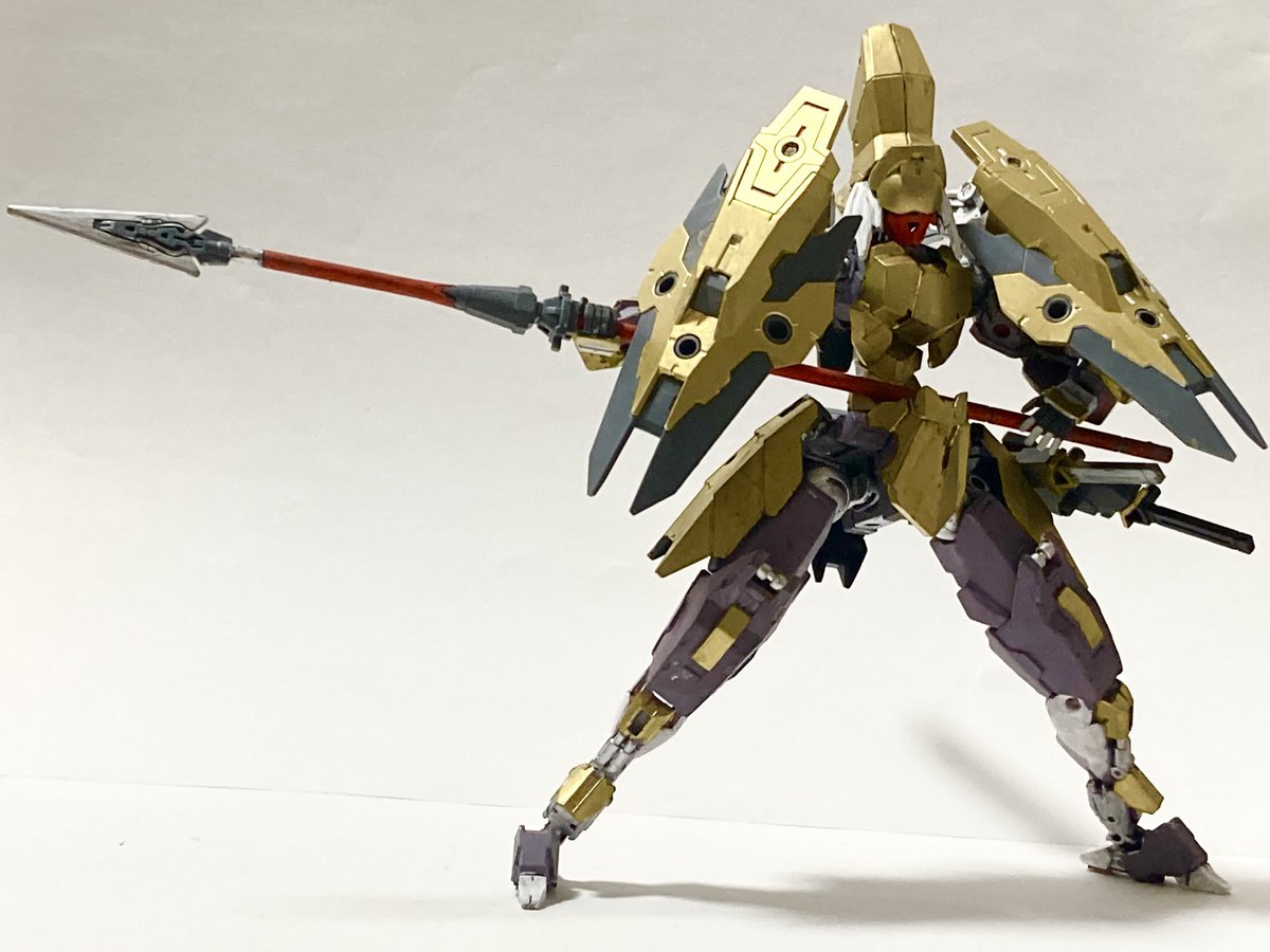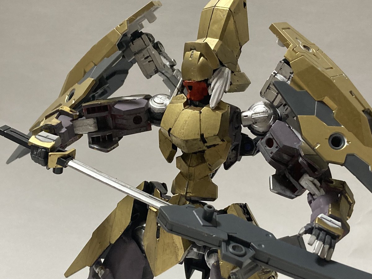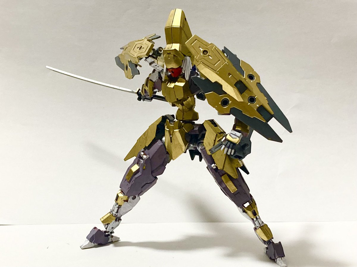スピナティオ・槍又左 【マクシオン戦国絵巻】所属 [BUSYO]前田利家を模した機体 武装は朱槍とカタナ二振 金色の対ビームコーティング具足を纏い敵陣に切り込む #30MM森林戦 #30MMマクシオン軍