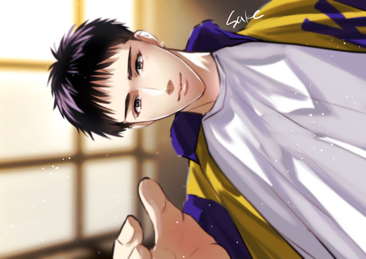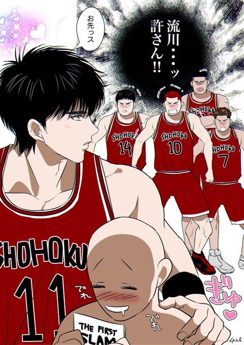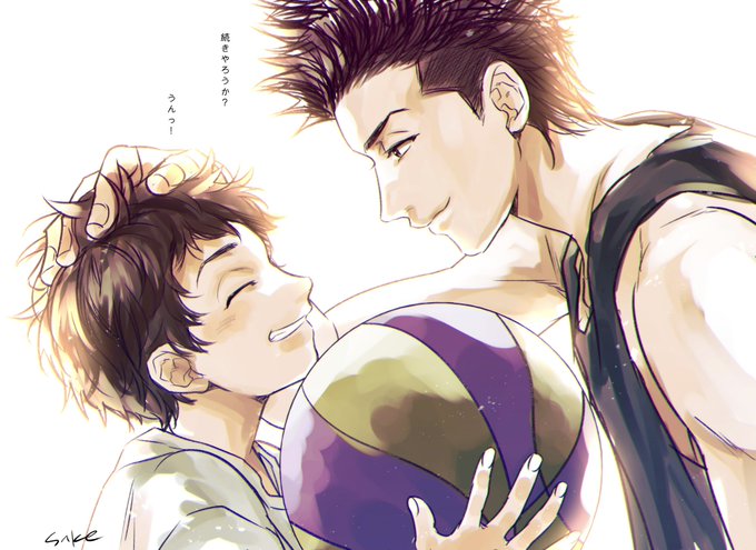 褒められて表情が緩む木暮先輩 シュート決まった時はしゃいでたら照れ臭そうにハイタッチして欲しい……😻 #イラストを投げたら文字書きが引用RTでSSを勝手に添える twitter.com/eihirerereeeee…