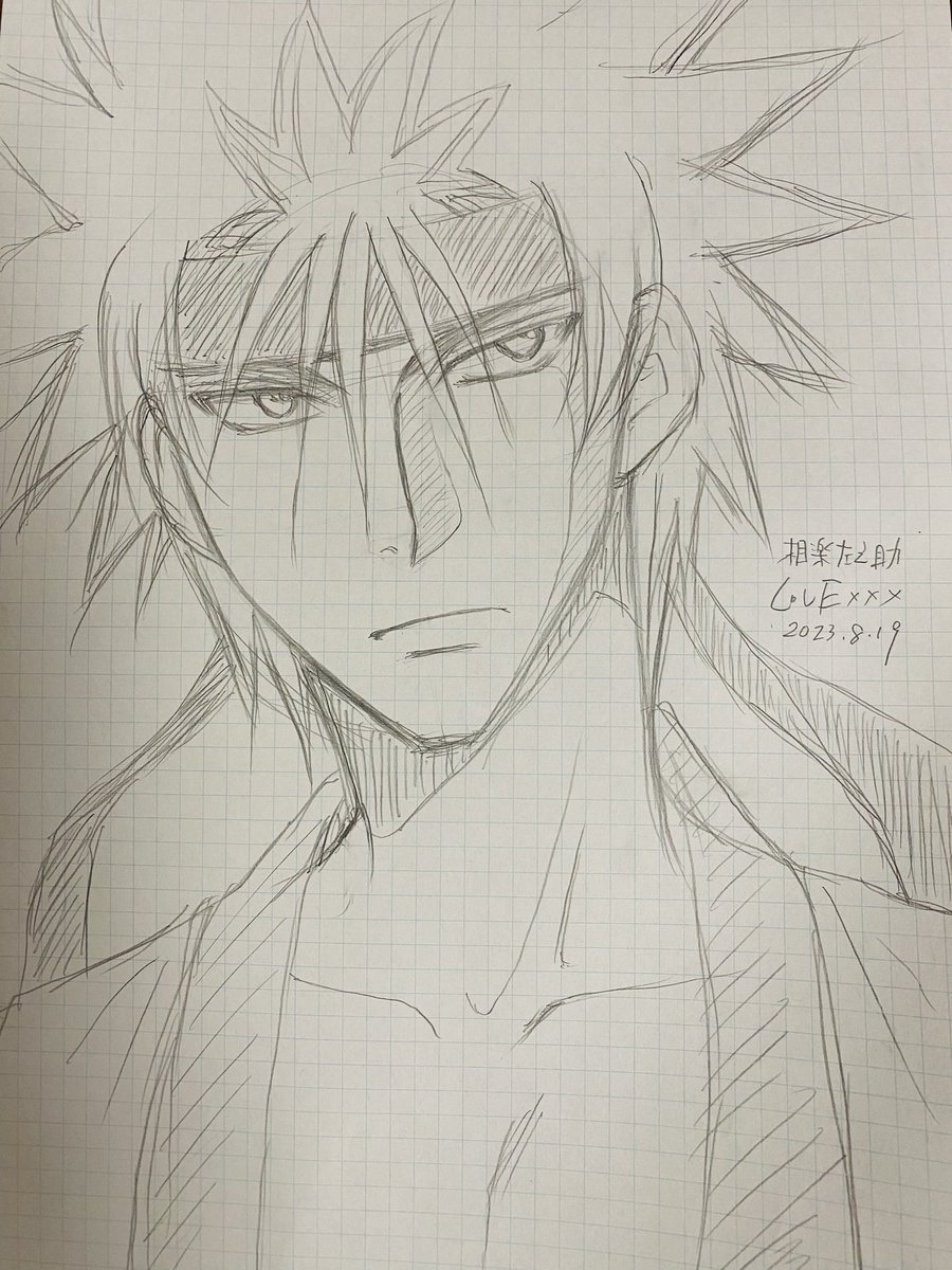 138 985 ところで今仕事中るろうに剣心のオープニングを鬼リピしてる😊飛天いいよ飛天✨で、勢いで左之助落書きした。ワイはこの子の強そうに見せて寂しそうな目が好きだったの🥹 23/08/19 18:43