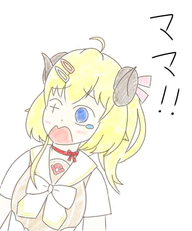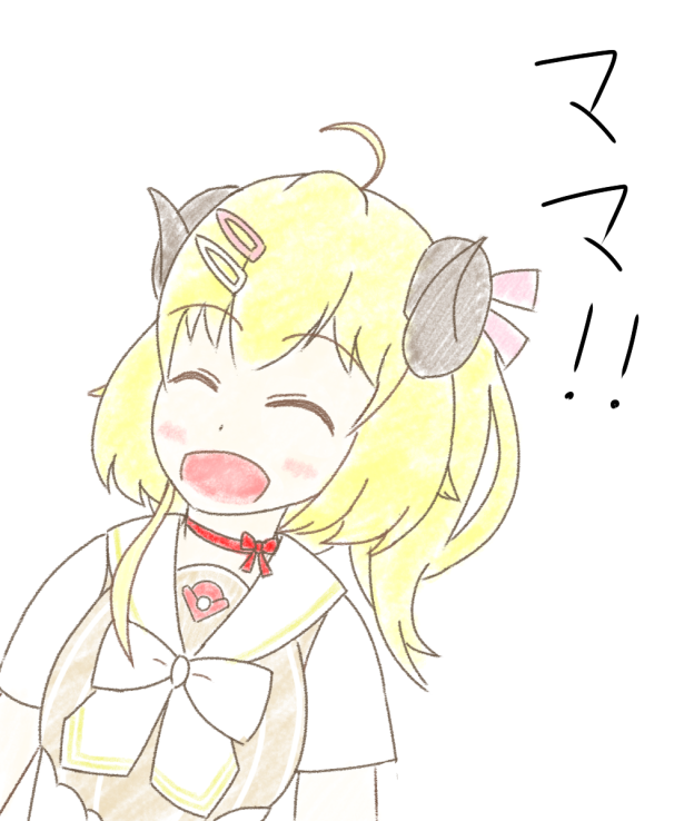 わためぇの「ママ!」がかわいかったので勢いだけで描きました。泣き顔だけなのもアレなので笑顔差分もさらに勢いだけで描きました。クオリティは気にしない 「そうはならんやろ」な展開や謎解きをわためぇと一緒に楽しめる、素敵な時間をありがとうございました! #つのまきあーと #ドドドライブ