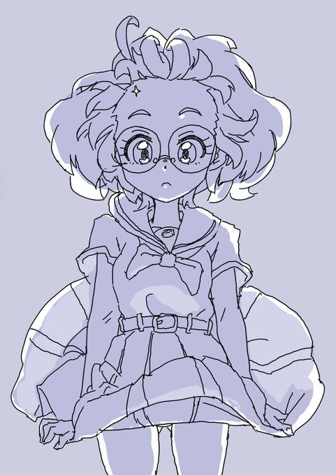 1 12 まだちょっと硬いけどルールー練習らくがき。眠そうな目と、あたまのてっぺんからおさげにかけてのシルエットを抑えると少し似るかな? 23/07/15 16:32